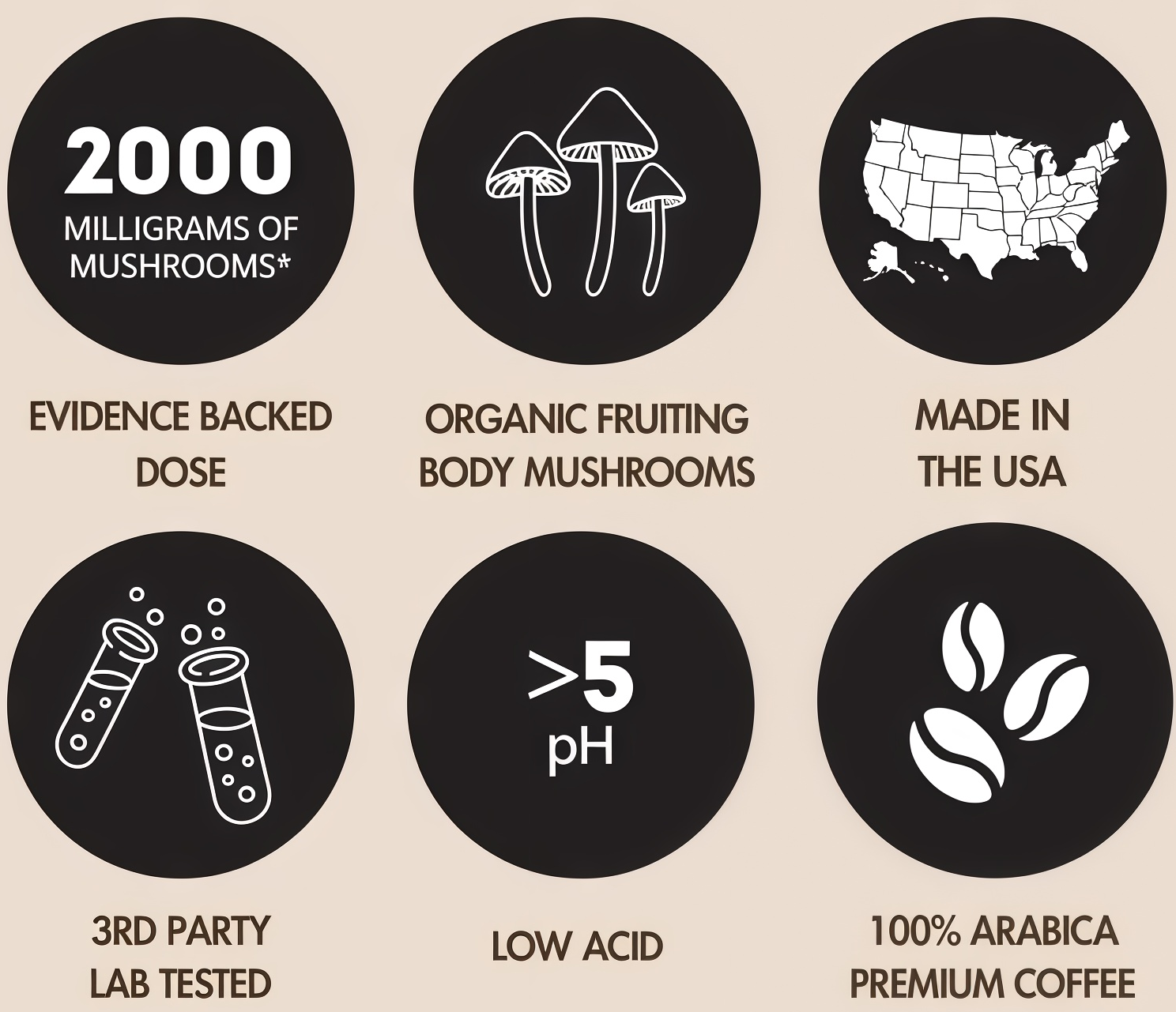 *We use 250 mg of 8:1 mushroom extracts which is equivalent to 2000 mg of 1:1 mushroom powder